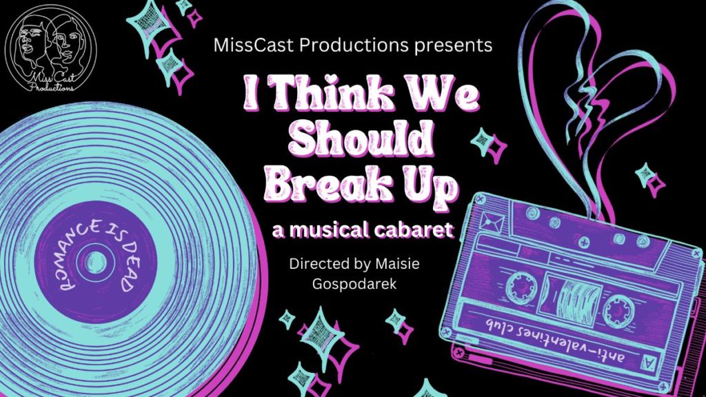 Wednesday through Sunday // February 8, 9, 10, 11, & 12 // Door at 7 PM // Show at 7:30 PM // $20 General Admission // $15 Students & Seniors // Audio Description Tickets for Visually Impaired Attendees Available Friday, February 10, and Saturday, February 11 It’s over. This isn’t working. I think we should break up. No two ways about it – breakups suck. But breakup songs? Well, they at least help to ease the pain. I Think We Should Break Up is a musical cabaret that – using the music of Cher, Amy Winehouse, Bruno Mars, the Beatles, and many more – explores the inevitable ups and downs that come with the end of a relationship. Fun, funny, and a little heartfelt, this show is for everyone who’s ever had to contend with a broken heart. For further information, accessibility, and inquiries please visit https://www.zootownarts.org/meet-the-zacc/about/.